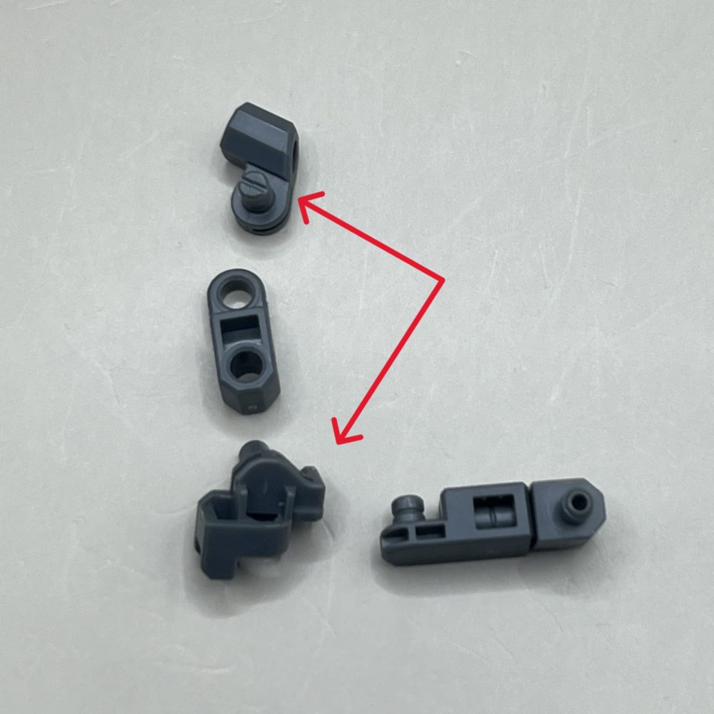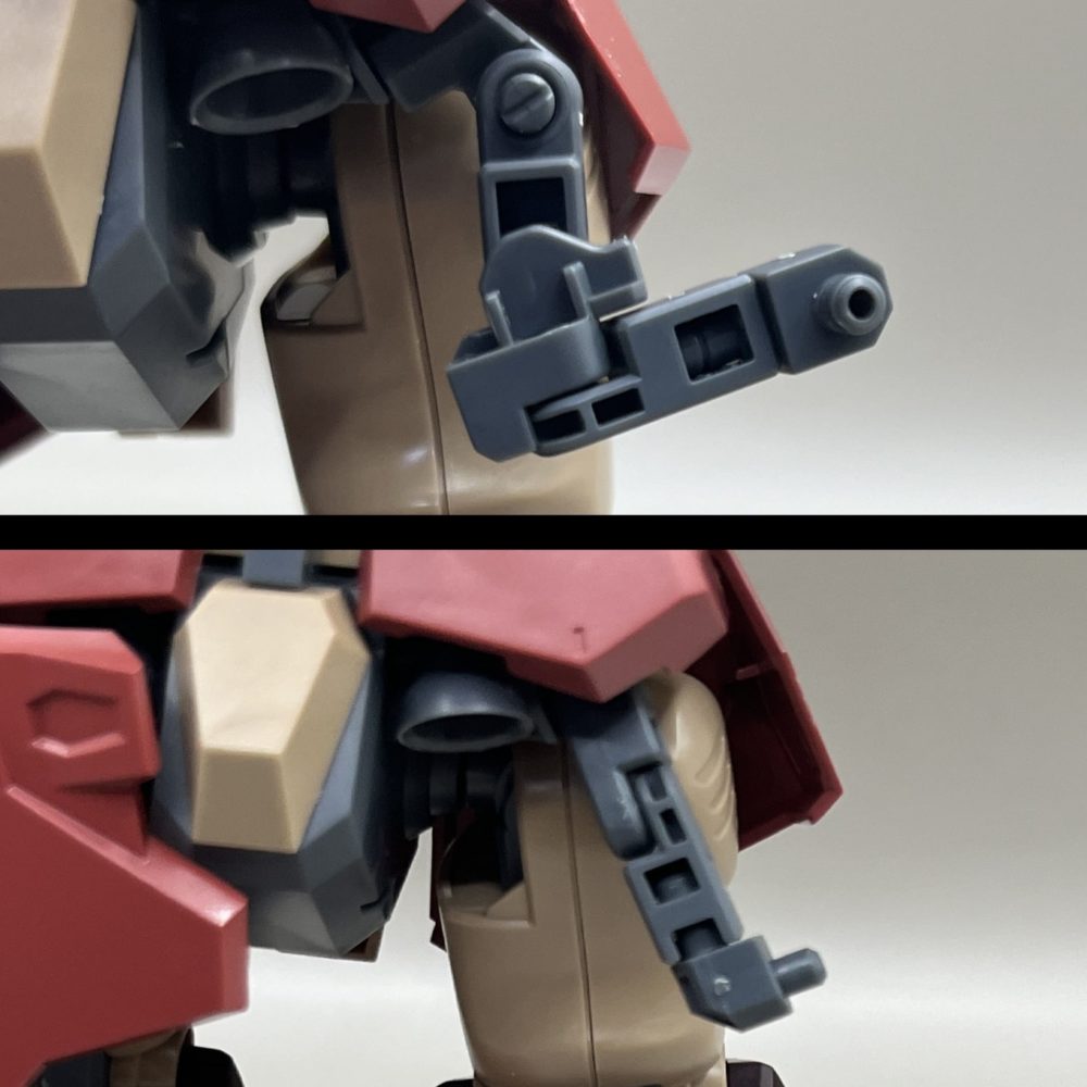 肩のスパイクが1本余剰です。ノーマルのスタビライザーは余剰扱いですが差し替えて仕様変更することも出来ます。