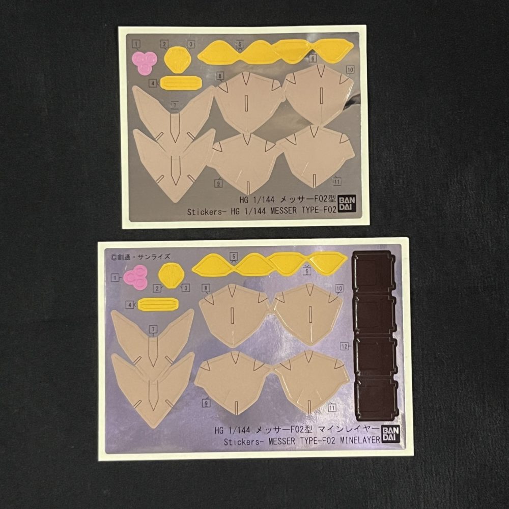 先に発売されたメッサーF02型のものと比較。マインレイヤーに貼るものが追加の他、色が少し濃くなっていました。